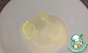 • Размягченное сливочное масло растираем с сахаром до белого цвета.