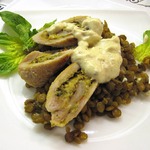 Жаль, что нельзя через интернет передать аромат, который распространяется при приготовлении этого блюда! Вся семья с нетерпением ждала, когда оно приготовится. Приготовьте на обед мясные рулетики с начинкой из базилика, сыра и чеснока, а на гарнир подайте нежную чечевицу с сельдереем. Ну, очень вкусно!