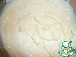Теперь смешиваем в другой миске творог, сахар и яйца. Взбиваем блендером до кремообразного состояния.