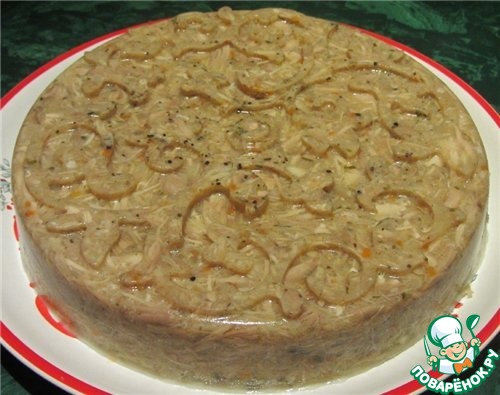 На дно емкости для холодца кладем петрушку и морковь, разливаем холодец. Убираем в холодильник до полного застывания (4-5часов).