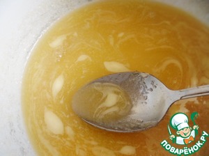 В кастрюльке смешиваем сахар, мед, сливочное масло и растапливаем на плите до полного растворения масла и сахара.