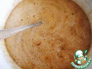 Добавляем чайную ложку соды, корицу и имбирь. Перемешиваем, чтобы осела пена. Остужаем пару минут, добавляем яйцо.
