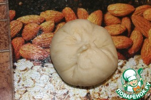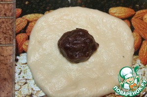 Затем шарик расплющиваем ладонью, кладем в центр шарик пасты "Ан"