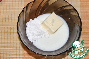 Теперь надо сделать сладкую глазурь: смешать теплое молоко, сливочное масло и сахарную пудру
