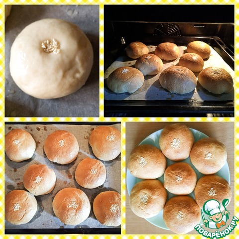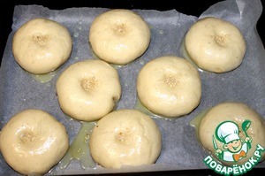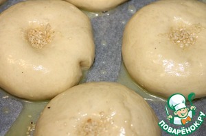 В середине каждой булочки пальцем сделать углубление и насыпать в него кунжут