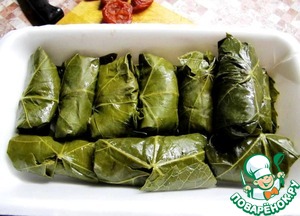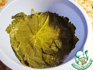 • Виноградные листья вымочить в воде и промыть. Удалить ножки листьев.