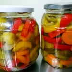 Чуть остывшие овощи сложить в банку или другую емкость и залить горячим маринадом. Овощи должны быть полностью покрыты маринадом.