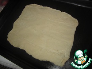 Тесто разделить на 3 части, раскатать пласты толщиной 3-4 мм, выложить на противень, наколоть вилкой и выпекать в духовке 200 С по 15 минут.