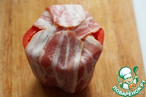 4. Каждый перец обернуть беконом (у меня ушло на один перец 3-4 полоски бекона).