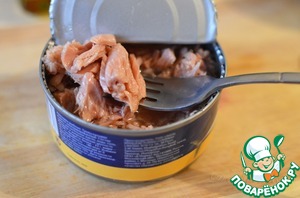 Крупные куски тунца разобрать вилкой на более мелкие.