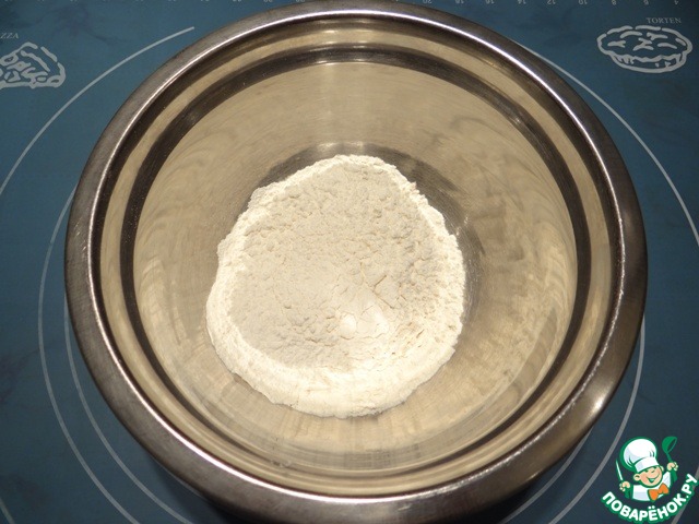 Сразу оговорюсь, что я готовила двойную порцию печенья. Муку просеиваю с разрыхлителем.