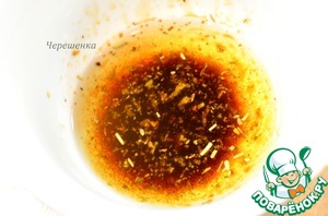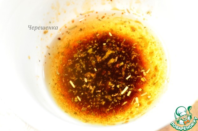 • Для заправки оливковое масло налить в мисочку, добавить туда половину чайной ложечки сушеных прованских трав (я в списке ингредиентов это не нашла, поэтому уточняю здесь). Это нужно сделать заранее, чтобы травки отдали свой аромат маслу, минимум 1 час (как раз пока варится фасоль). Затем добавить бальзамик и тщательно перемешать, получив однородную массу.