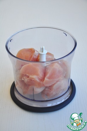 Филе помыть, обсушить, очистить от пленок. Нарезать филе небольшими кусочками, измельчить блендером до однородного фарша.
