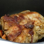 Дно мультиварки смазать 1 ст. л. растительного масла. Моя мультиварка-скороварка, плюс она содержит функцию"Мясо". Я ставлю клапан мультиварки в положение "Закрыт" и устанавливаю программу "Мясо"на 1 час. Для тех, у кого мультиварка не снабжена функцией скороварки, время необходимо увеличить, как минимум в 2 раза. Если у вас нет программы "Мясо", сначала включите программу "Выпечка" на 40 мин., через 20 мин. откройте крышку и переверните мясо. После окончания программы включите программу "Тушение" еще на 1-1,5 часа. Во время этой программы будет выделяться сок, а также мясо может приготовиться быстрее (все зависит от мощности мульти). Так что, в первый раз лучше проконтролируйте мясо, открыв мультю через час.