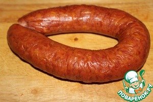 Колбасу пришлось фотографировать отдельно, не то, чтобы забыла, а захотелось акцентировать ваше внимание: с "краковской" колбасой салат вкуснее, нежели с колбаской другого сорта.