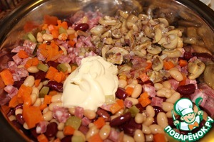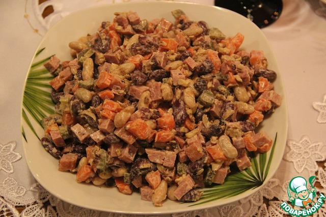 Рецепт «Салат из консервированной фасоли с колбасой»: