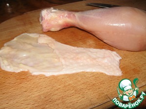 • Кожицу аккуратно снять с ножек и отделить мясо от кости.
