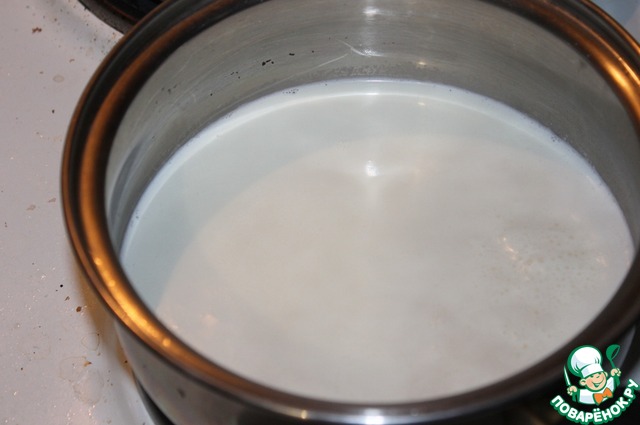 Сотейник со сливками сняла с огня, добавила желтково-сахарную смесь, хорошо размешала и опять поставила на огонь, добавила ванилин.