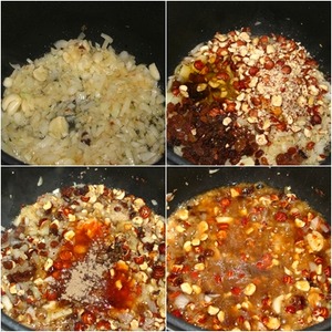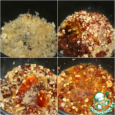 Добавить мед, херес (мне пришлось заменить сухим вином), сладкий соус чили, черный молотый перец и соль, прогреть несколько минут на слабом огне. -