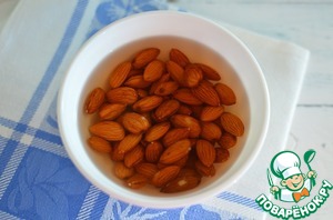 Залить миндаль горячей водой и оставить на 10 мин.