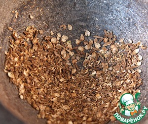 ... а перец, тмин и кориандр измельчим.
