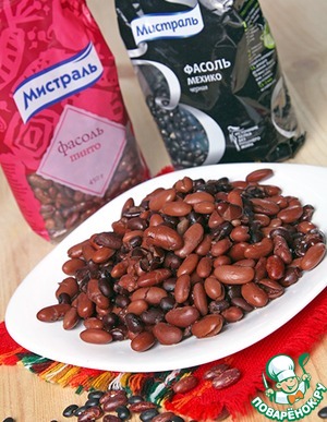 Я брала два вида: красную ПИНТО и черную МЕХИКО ТМ Мистраль. Вообще, в рецепте была указана красная фасоль, так что можете использовать только ее. Я же добавила еще для расширения вкусовой палитры черную, она имеет легкий грибной оттенок во вкусе.