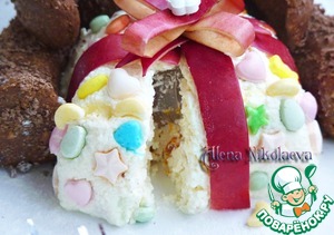 Достаем мишку из холодильника и перекладываем к нему наш творожный подарок.. -