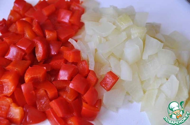 Обжариваем одну мелко нарезанную луковицу на половине указанного количества масла.