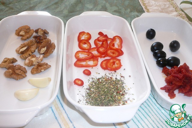 Она же начинка, она же намазка. Вкусный домашний мягкий сыр с орехами, травами, чесночком, оливками, вялеными помидорами, болгарским перцем... При подаче на стол, оформление блюда может быть самым разным, сплошной полет фантазии! Насколько далеко улетела моя, вы увидите в рецепте. Приятного всем аппетита и с наступающим Новым Годом!