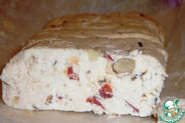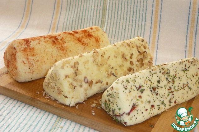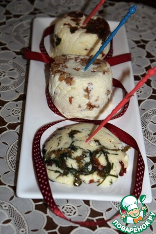 Делим сырную массу на три части, размешиваем с наполнителем, придаем желаемую форму. Посуду с сыром отправляем на ночевку в холодильник.