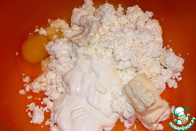 - Творог ( у меня 9%; чем жирнее, тем лучше) — 500 г