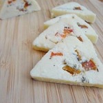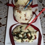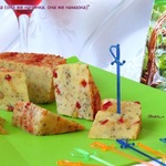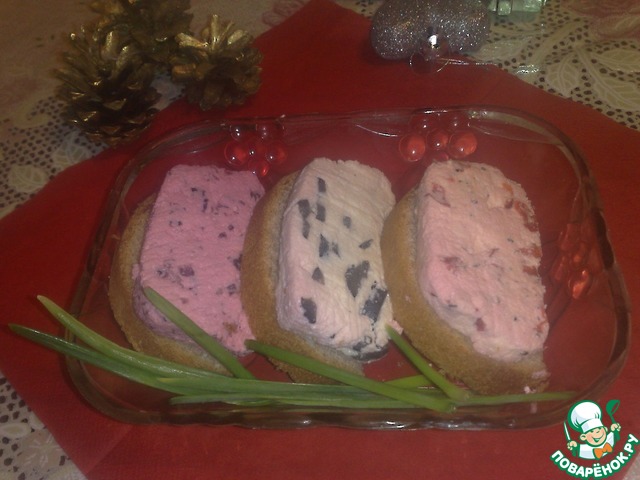 Крупные формы, вроде этих треугольных призм, формируем сразу, как только добавили в сыр наполнитель. Всяческую мелочевку лепим уже их охлажденного сыра. Вот они мои "шедевры" -- кубики, "елочки", "недоснеговички". Кубики в ореховой крошке, елочки в итальянских травах. С "недоснеговичками" еще проще - обошлись оливкой. Как видите, скульптор из меня никудышный. Зато я с успехом нафаршировала сырной массой эклеры и намазала пару кусочков хлеба. Бутеры остались за кадром, но я ими тоже горжусь! )))