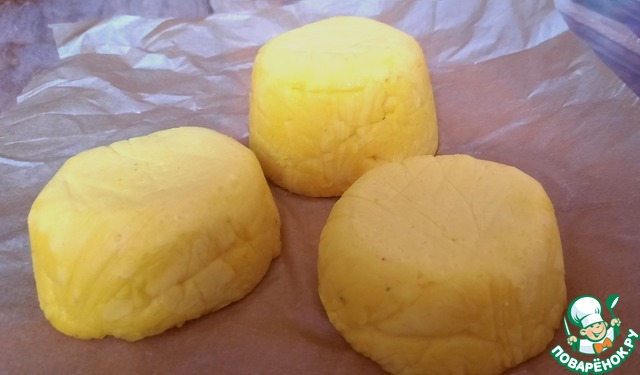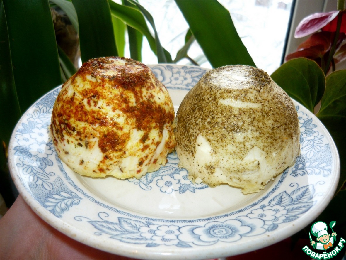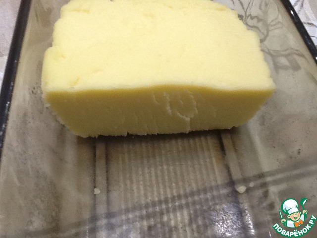 Я часто использую для сырных дел плошки с низкими бортиками (пищевую пленку на дно, легче изымать). Такая форма хороша потом для нарезок.