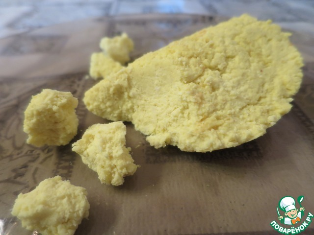 Время приготовления может варьировать (плюс-минус 5-10 минут). Что-то зависит от качества творога (и его количества), что-то от интенсивности нагрева, от сковороды. Предлагаю ориентироваться на результат - желтенькая, маслянистая, почти однородная, не плотная, очень нежная, пластичная масса. Если собирается в кучу и видны четкие следы лопатки, значит все, сыр готов! Ну, почти!)))