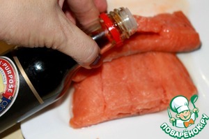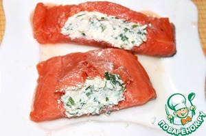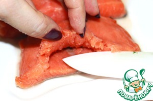 В стейках лосося делаем прорези, но не сквозные. Нам нужны кармашки