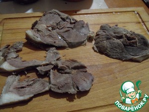 - Говядина (одним куском мякоти - от лопатки, от задней ноги, шеи) — 350 г