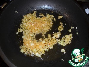 Топим сливочное масло, обжариваем в нем лук до золотистого цвета.