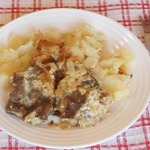 Совет. Варите бульон на суп, бросьте туда же и кусок мяса на смаженину. Мясо на смаженину можете изъять из супа, положить в холодильник и за считанные минуты на другой день дома будет отличный ужин. Это, к сожалению не заснято.
