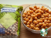 1. Нут замочить в холодной воде не менее, чем на 4 часа, можно на ночь (соотношение нута и воды 1:2). После этого слить воду, промыть нут и отварить его до готовности в подслащенной сахаром воде в течение 2 часов. Я отвариваю в мультиварке на режиме "Тушение".