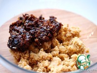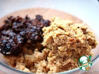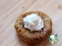 6. Руками перемешайте все в однородную массу. Мокрыми руками скатайте небольшие шарики, расплющите их в лепешку и в серединку положите по 1/3 ложки маскарпоне. Заверните края лепешки наверх, сверху добавьте немного нутово-фруктовой массы и скатайте шарик. Все действия выполняем мокрыми руками!