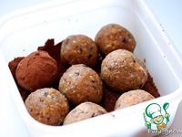 7. Полученные конфеты можно обвалять в кунжуте, орехах или какао. Так как руками обваливать в какао не очень удобно, то я предлагаю следующий способ. Насыпать в контейнер какао-порошок, сложить туда конфеты.