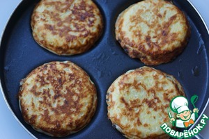 Готовить на медленном огне, сковороду обязательно закрывать крышкой. Одна сторона готова - перевернули и опять накрыли крышкой.