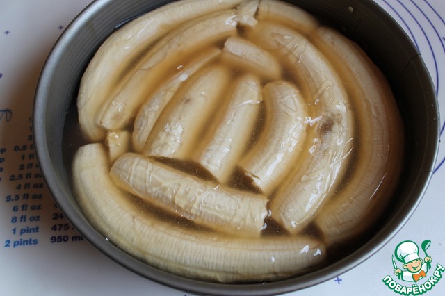 И польем нашим желе сверху банан. Уберем в холод, а пока будем делать крем.