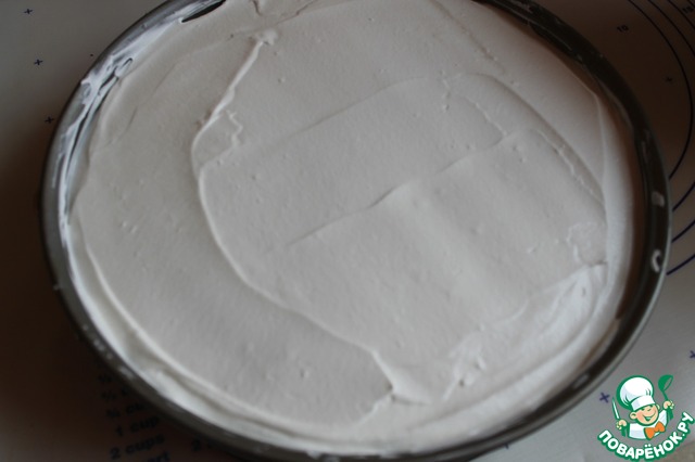 2. из за того,что форма была больше коржа, а суфле аккуратно застыло по форме, мне не пришлось обрабатывать бока, они были идеально ровно белые