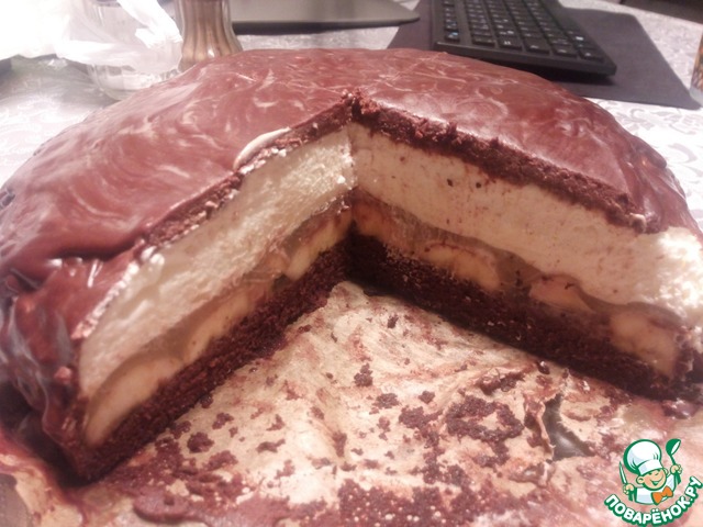 Бисквит и суфле понравились, а вот банан отяжелил торт. Все опробовавшие торт сошлись во мнении, что с клубникой или персиками должно получиться и нежнее и вкуснее (хотя, о вкусах не спорят