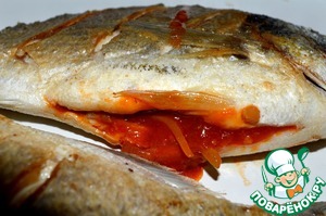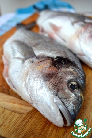 Очень сочная рыбка, гарнира не требует. Одна дорада на человека - это довольно большая порция, лично я съедаю только половину. Так что, имейте ввиду!