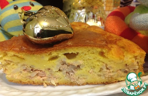 Очень нежный, сытный, ароматный. Вкусный и легкий в приготовлении. Пирог без заморок. Очень кстати будет после новогодней ночи на следующее утро, когда голова бо-бо, денег тю-тю, в желудке трясущийся холодец, и ничего не хочется. Мой муж всегда просит этот пирожок с крепким чаем.