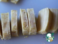 Кладем на хорошо разогретую сковороду аккуратно наши брусочки и обжариваем до красивой золотистой корочки с обеих сторон! Очень аккуратно переворачивая! |