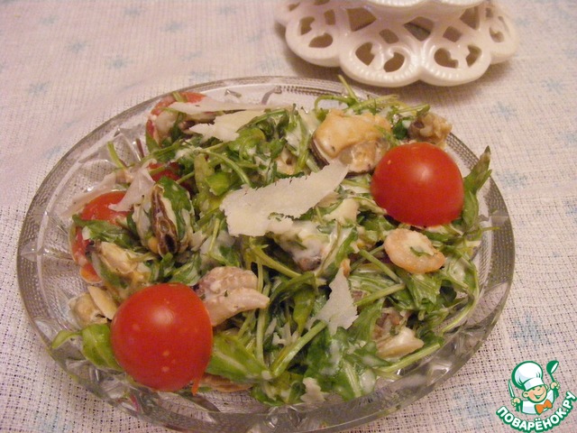 Рецепт «Салат с морепродуктами, пармезаном и рукколой»: