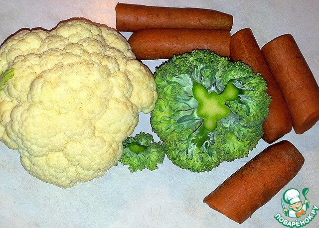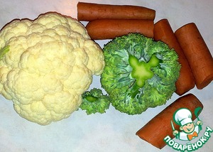 Для начинки возьмём одну недовАренную морковь, сырые цветную капусту и брокколи.